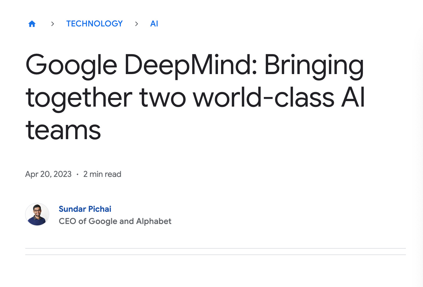 Honestly, I think the most important move for Sundar was to fully merge two key AI groups within the company: Google Brain and DeepMind.