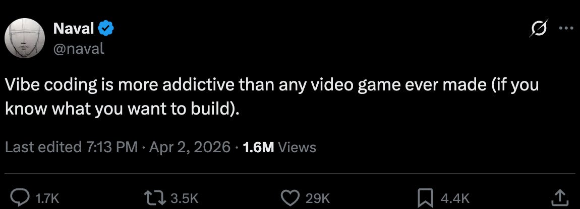 It’s an irreversible paradigm shift, and I strongly believe every single builder should be actively leveraging these AI tools to move 10x (or more) faster.
